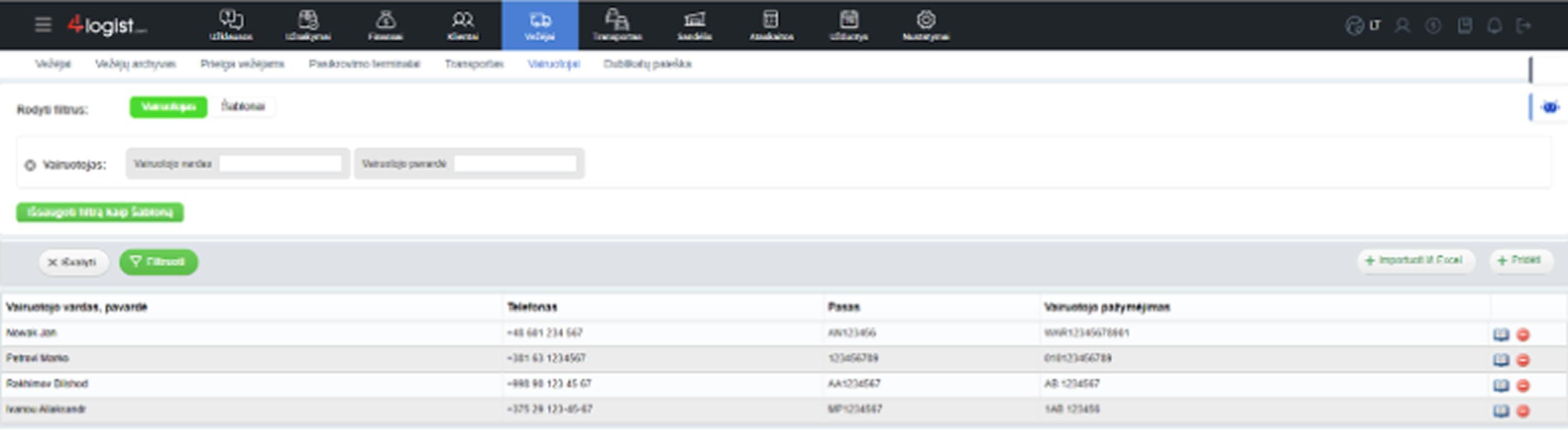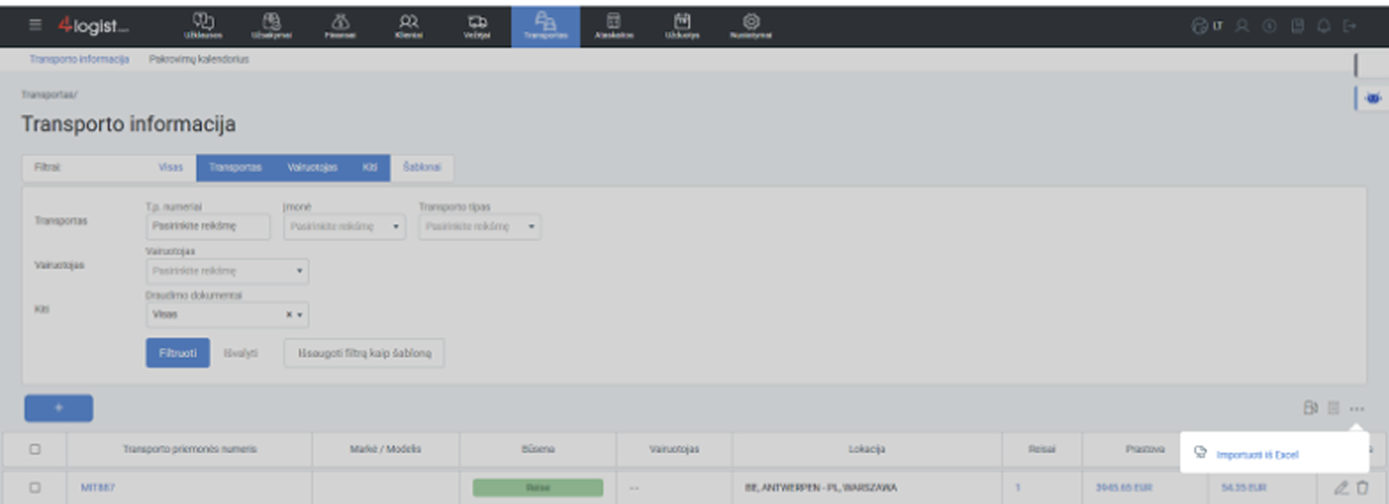 Dabar vairuotojų nebereikia pridėti rankiniu būdu po vieną. Nuosavo transporto bloke atsirado mygtukas „Importuoti iš Excel“: