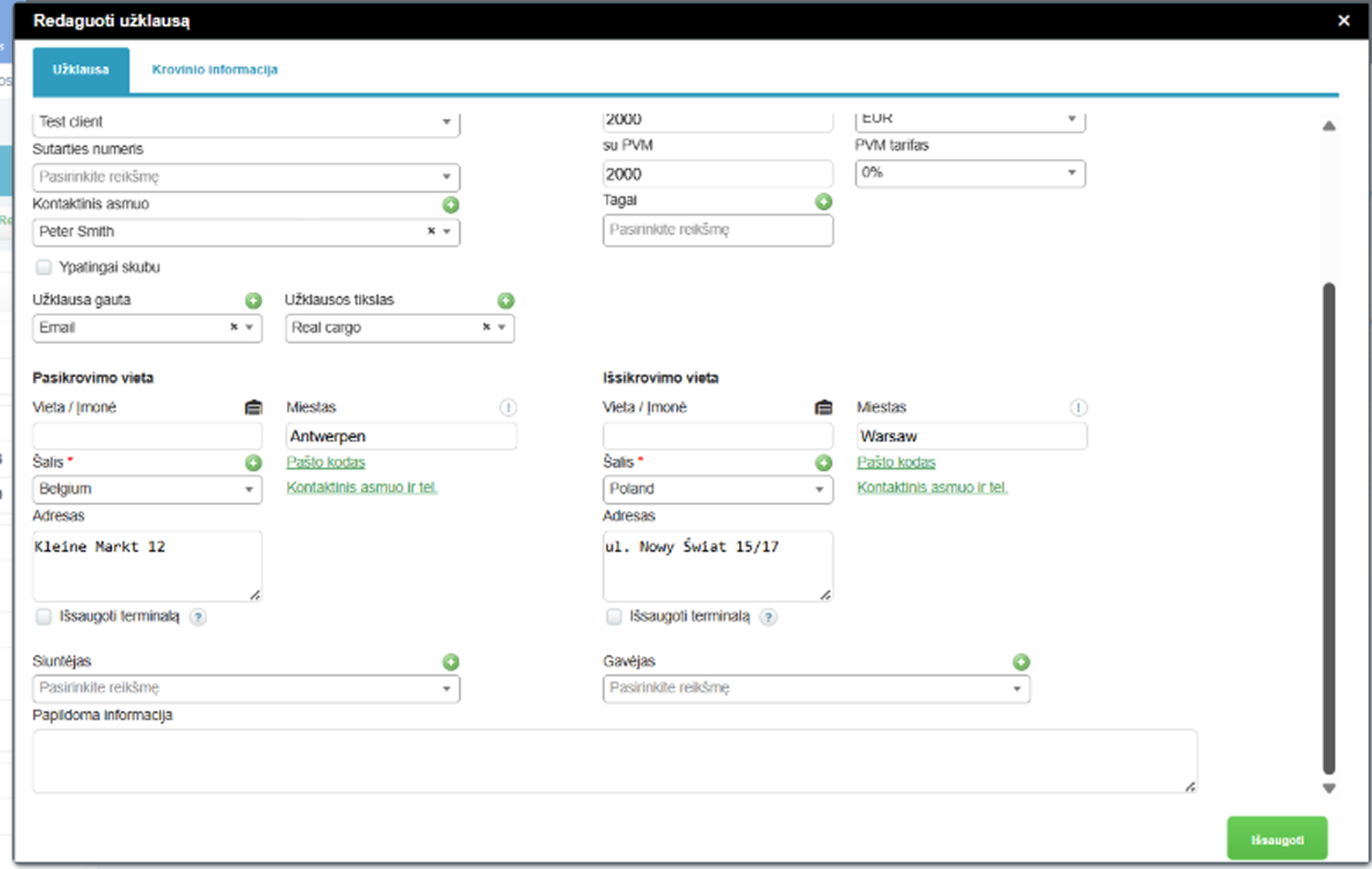 Sistemoje atsirado svarbus loginis patobulinimas — atskiri laukai „Siuntėjas“ ir „Gavėjas“. Anksčiau šie duomenys dažnai buvo įrašomi į pakrovimo ar iškrovimo įmonių laukus, o tai sukeldavo painiavą ir netikslią analitiką.Dabar siuntėjas ir gavėjas yra prieinami užklausose, kroviniuose ir maršrutuose. Taip pat pridėtos atskiros kolonos lentelėse ir atsirado galimybė eksportuoti šiuos duomenis į „Excel“ ataskaitas.