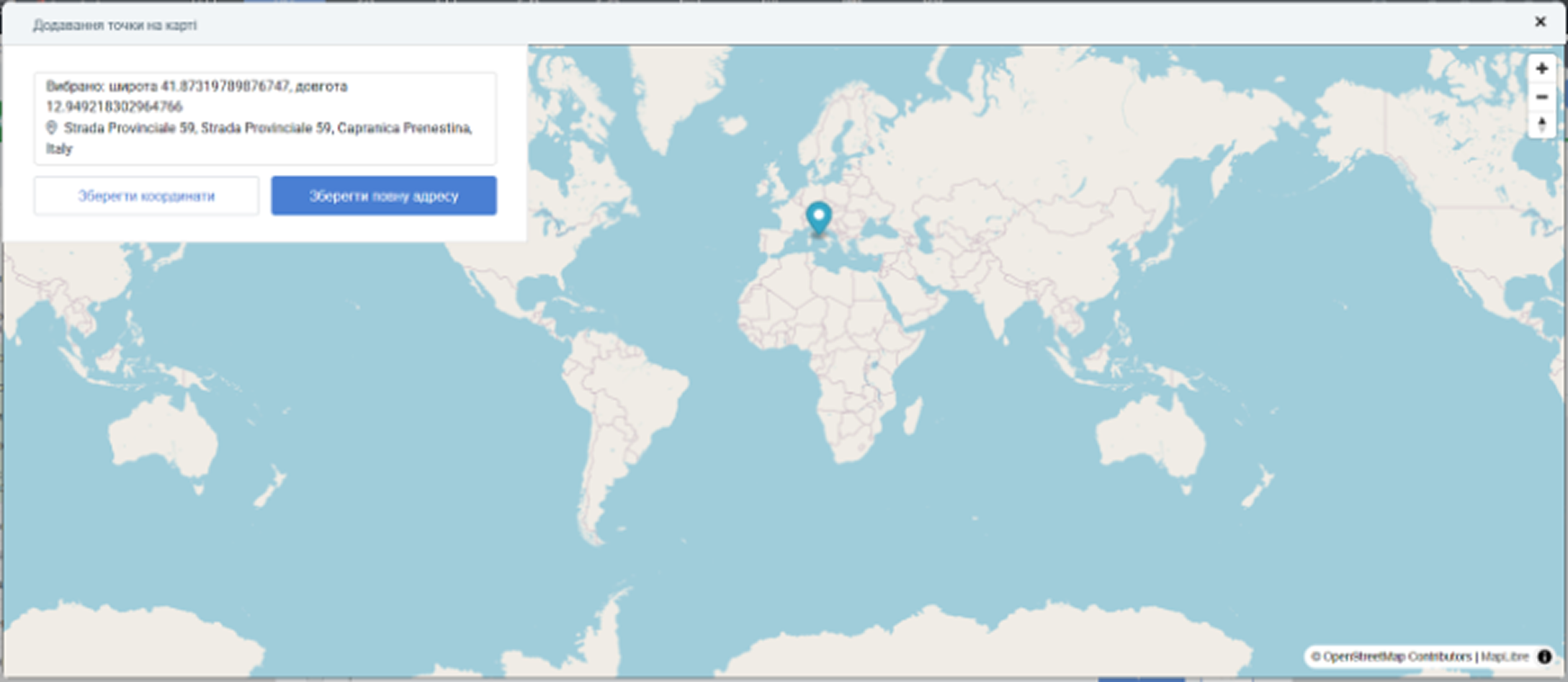 4. Система автоматично підтягує координати, адресу, широту та довготу.